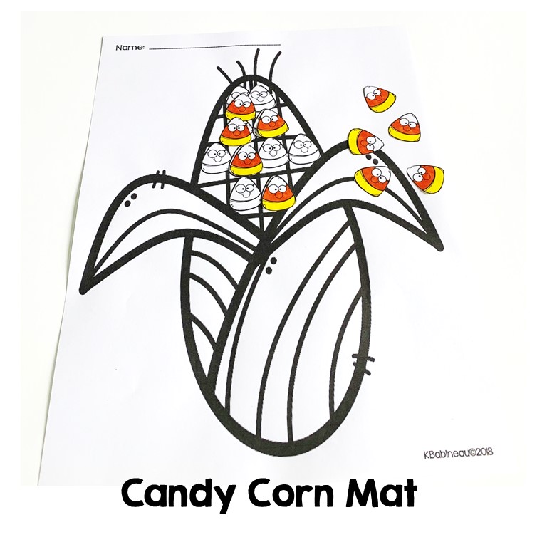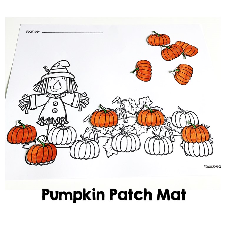 To use these Free Themed Mats, simply print the downloadable free picture scene mats and accompanying pages with pumpkins and candy corn pieces that students can color and cut apart. You can also give the students candy corn and candy pumpkins to place on their mats or mini-erasers. These are very versatile and perfect for mixed groups.